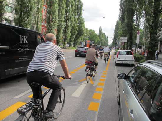 München ist fahrradfreundlicher geworden in den letzten Jahren, und die Nutzung des Fahrrads im Alltag boomt. Doch gerade an den großen Zubringerstraßen in Richtung Altstadt fassen die veralteten Bordsteinradwege die Massen von Radlern längst nicht mehr. Ein Überholen langsamerer Radfahrer ist auf den zu schmalen Wegen kaum möglich; mit Fußgängern auf den unmittelbar angrenzenden Gehwegen kommt es immer wieder zu Konflikten, insbesondere dort, wo Läden oder Cafés mit Aufstellern und Freischankflächen den Platz auf dem Gehweg noch weiter verringern; richtig gefährlich wird es an Kreuzungen und Einmündungen, wo Autofahrer beim Abbiegen die Radler oft viel zu spät oder gar nicht wahrnehmen. Vor diesem Hintergrund fordert der Allgemeine Deutsche Fahrrad-Club (ADFC) München mehr Raum für Radler entlang von Straßen wie der Rosenheimer Straße oder der Lindwurmstraße.