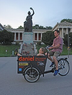 Vor drei Monaten war es nur eine Idee – nun ist es da: „daniel – Dein Lastenrad für München“. An den Start gebracht hat dieses unkonventionelle Projekt der Allgemeine Deutsche Fahrrad-Club (ADFC) München. Dank zahlreicher Geldspenden und dem Sponsoring der Firma Radlbauer steht „daniel“ ab 2. Juni nun allen Münchnerinnen und Münchnern zur kostenlosen Nutzung zur Verfügung. In seinem Ladekasten hat vieles Platz: Getränkekästen oder der Wocheneinkauf, der Sperrmüll für den Wertstoffhof oder der Grill für die Feier an der Isar, die Kinder auf der Fahrt in den Zoo oder sogar die neue Waschmaschine.