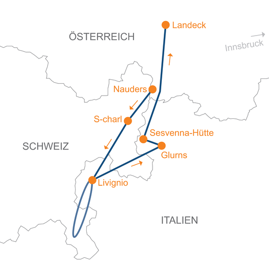 Auf unserer MTB-Tour durch Österreich, Schweiz und Italien erleben wir traumhafte Landschaften und tolle Trails. Der kulinarische und kulturelle Genuss kommt auch nicht zu kurz. Unsere Highlights sind der Costainaspass, das Hochplateau Jufplan, das MTB-Paradies Livigno, der Berninapass und das Val Mora. Als Abschluss durchqueren wir am letzten Tag die Uinaschlucht.