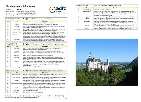 Von Geltendorf geht es auf kleinen Wegen und Straßen zum Lech und zur sehenswerten Stadt Kaufbeuren. Der "Dampflokweg" bringt uns nach Schongau, wo wir die dortige Brauerei besichtigen. Auf dem Lech-Höhenweg erwarten uns eine eiszeitliche Landschaft und schöne Ausblicke auf die Alpen. Vorbei an Neuschwanstein und Hohenschwangau durchqueren wir Füssen und radeln auf einer stillgelegten Bahntrasse durch die herrliche Landschaft nordwärts. Über den idyllisch gelegenen Elbsee erreichen wir den auf vielen Teilen naturbelassenen Günztalradweg. Unsere Tour lassen wir in einem Biergarten in Buchloe ausklingen.