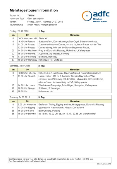 Bei einem kleinen Stadtrundgang in Passau besichtigen wir den Dom mit der größten Orgel weltweit, schauen uns das Scharfrichterhaus an und den Zusammenfluß von Ilz, Inn und Donau. Anschließend geht es in den Bayrischen Wald. Wir fahren auf der Donau-Bayerwald-Route zu unserem Quartier in Grafenau. Am 2. Tag radeln wir nach Neuschönau und besuchen den Baumwipfelpfad im Nationalpark. Anschließend fahren wir Richtung Lusen (Wanderung) und über Spiegelau. Am Sonntag fahren wir gemütlich Richtung Donau und weiter zur Isarmündung und Plattling. Am 1. und 2. Tag sind es ca. 1000 Höhenmeter, am 3. Tag 600.