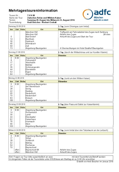 Auf einer Anhöhe nördlich über dem Inntal liegt Angerberg. Für die kommenden Tage sind wir hier ansässig und haben einen grandiosen Blick auf die Kitzbühler Alpen und den Wilden Kaiser, welchen wir auch umrunden werden. Mit dem Start im Chiemgau bekommen wir die richtige Einstimmung und das Gespür für die nächsten Tage. Weitere Ziele sind die reizvolle Wildschönau sowie die wildromantische Kundler Klamm und Kaiserklamm. Ebenfalls auf dem Programm stehen einige Stadtansichten und ein ganz besonderer Friedhof. Der Rückweg erfolgt über den Tatzelwurm und das Sudelfeld bis nach Bayrischzell.
