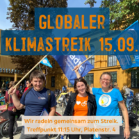 Liebe Mitglieder, liebe Interessierte, am 15. September ist wieder Klimastreik. Der Junge ADFC München trifft sich um 11:15 Uhr am Radlerhaus in der Platenstraße und radelt - ausgestattet mit Fahnen - zur Universität, zu Fuß geht es dann weiter zum Siegestor. Mitradeln und sich beteiligen kann jeder, egal welches Alter! In Garching gibt es am 24. September eine Premiere! Die Staatstraße 2350, die quer durch den Ort führt, wird für den motorisierten Verkehr gesperrt und ein von ADFC, Bund Naturschutz und JBN organisierter autofreier Klimatag kann auf der Fläche stattfinden. Komm' zwischen 11 und 17 Uhr nach Garching! Termine wie Stammtische der Ortsgruppen, Selbsthilfewerkstatt, Codierungen, Fahrrad-Tagestouren und weitere aktuelle Infos zu Öffnungszeiten, Kursen und Absagen sind immer aktuell auf unserer