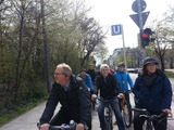 Am vergangenen Mittwoch (6.4.) sind die Münchner Umweltverbände (ADFC, BUND, GreenCity) knappe 20km um die Münchner Innenstadt mit zahlreichen Stadträten, Fraktionsmitarbeitern und Verwaltungsmitarbeitern geradelt. Andreas Groh führte die Tour, bei der den Stadträten in Anlehnung an ihre Reise in die Niederlande letzten Sommer, eine Auswahl an guten und schlechten Stellen für den Radverkehr gezeigt und diese so für die Probleme und deren Dringlichkeit aufmerksam gemacht.