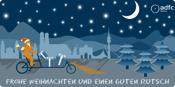 Liebe Mitglieder, liebe Interessierte, der Winter will sich noch nicht so richtig zeigen und wird uns dieses Jahr wohl wieder grüne Weihnachten bescheren. Das tolle Wetter hat auch unseren Wintertouren einen regen Zuspruch besorgt. An dieser Stelle möchten wir vom Vorstand uns bei allen Aktiven, Mitarbeitern und Mitstreitern für die super gemeinsam geleistete Arbeit in 2015 bedanken. Wir haben vieles bewegt und angestoßen und hoffen, dass es in 2016 in ähnlicher Form vorangeht. Wir wünschen allen ein paar frohe Weihnachtstage und ein gesundes Neues Jahr 2016. Am 29. Januar findet unsere Mitgliederversammlung im Saal des KVR (Ruppertstraße 11) ab 17:30 Uhr statt. Die Einladung dazu erfolgt separat in den nächsten Tagen per E-Mail bzw. auf dem Postweg. Noch ein gutes und schnelles Weihnachtsgeschenk? Die Mitgliedschaft im ADFC kann man auch verschenken. Mehr Infos gibt's hier: