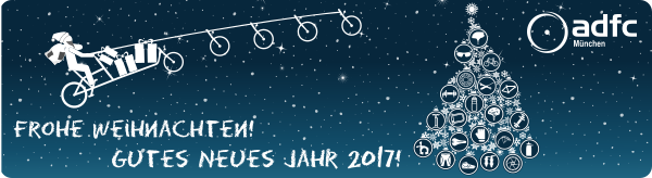 Liebe Mitglieder, liebe Interessierte, Das Jahr geht so langsam zu Ende und es steht für alle eine etwas ruhigere Zeit über die Festtage an. Für Euch war es hoffentlich ein gutes und radlreiches Jahr 2016. An dieser Stelle möchten wir vom Vorstand uns bei allen Aktiven, Mitarbeitern und Mitstreitern für die gemeinsam geleistete Arbeit in 2016 bedanken. Wir haben vieles bewegt und angestoßen und hoffen, dass es in 2017 in ähnlicher Form vorangeht. Wir wünschen allen ein paar frohe Weihnachtstage und ein gesundes Neues Jahr 2017. Am 3. Februar findet unsere Mitgliederversammlung im Saal des KVR (Ruppertstraße 11) ab 17:30 Uhr statt. Die Einladung dazu erfolgt separat in den nächsten Tagen per E-Mail bzw. auf dem Postweg. Noch ein gutes und schnelles Weihnachtsgeschenk? Die Mitgliedschaft im ADFC kann man auch verschenken. Mehr Infos gibt's hier: https://www.adfc.de/mitgliedschaft/geschenkmitgliedschaft/bewegung-verschenken Du möchtest unsere Arbeit gerne unterstützen, hast aber nur bedingt Zeit? Dann kannst Du uns gerne ein paar Stunden Deiner wertvollen Zeit (min. 2h) schenken und uns bei den zahlreichen Aktionen unterstützen. Du kannst auf Menschen zugehen und bist nicht scheu? Dann bist Du genau der/die Richtige für unsere Infostände, Parcours, Quiz etc. Betreuung/Fahrer LastenradLastenrad fahren ist cool! Falls Du aber leider selbst nicht über eines verfügst, hast Du bei uns die Gelegenheit dazu: Wir suchen für unser neues E-Lastenrad (Jule) jemanden der dieses, bestückt mit Infomaterial, ab und zu auf unsere Veranstaltungen fährt. Eine Einweisung bekommst Du von uns. Lust drauf? Dann melde Dich! Einlasskontrolle Vortrag Wir suchen für einen Vortrag (Road to Granada) Mithelfer für die Einlasskontrolle und Kartenausgabe sowie Unterstützung in der Vor- und Nachbereitung. Toller Nebeneffekt: Du kannst Dir den spannenden Vortrag anschauen. Interesse? Dann meld Dich bei uns! Bei Fragen zu den Stellen kannst Du Dich gerne an Susanne unter susanne.loderbauer(..at..)adfc-muenchen.de wenden.