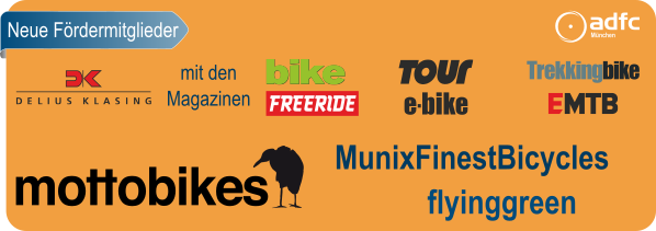 Newsletter weiterempfehlen, an- oder abmelden – http://www.adfc-muenchen.de/newsletteraenderung Impressum: ADFC München e.V. - Platenstr. 4 - 80336 München |