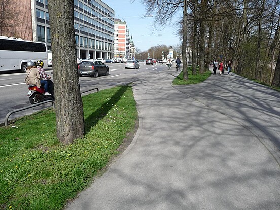 Radweg und Fußweg über die Wittelsbacherbrücke sind viel zu schmal.